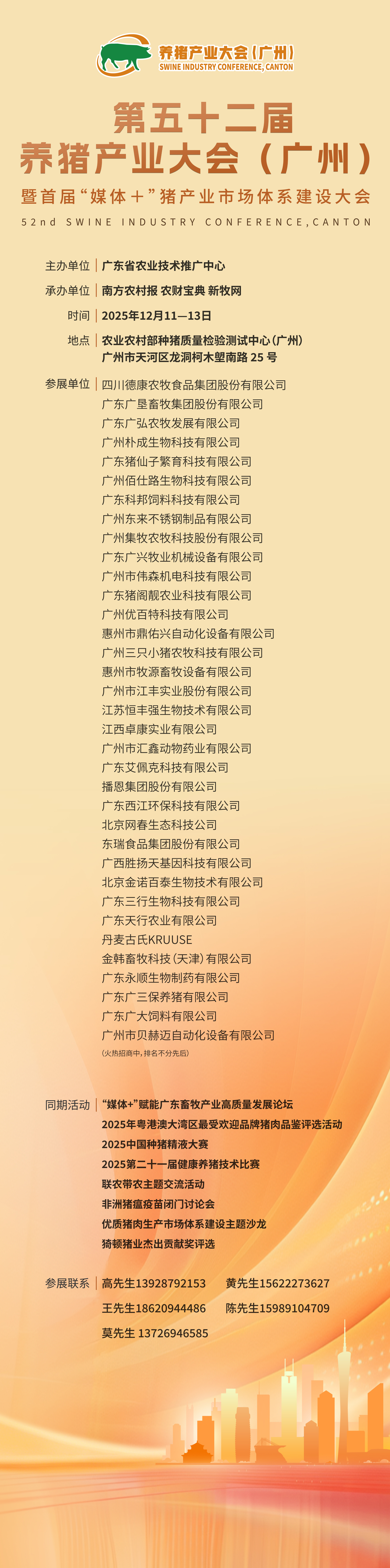 大赛分教槽料、保育料、小猪料、中猪料、大猪料、公猪料、怀孕料、哺乳料八大品类,每个品类将评选出一二三等奖各1名,并于2025年12月11-13日第五十二届养猪产业大会(广州)上颁奖。